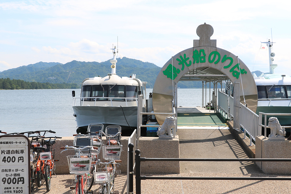 Sightseeing boat + bike for 900 yen, or motorboat + bike for 1,000 yen (groups of 4 or more only / unavailable during Golden Week and the Obon holiday period).